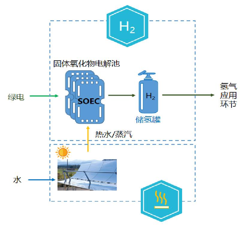 用外部廉價或免費廢熱替代部分高品質電能,在實現能量梯級利用的同時,制氫能耗及能源成本大大降低,綠氫成本更低。相比常溫電解水制氫,最高可以節電45%。SOEC專用場景主要有:①光熱耦合綠電制氫;②化工廠、煉鋼廠、水泥廠余熱廢熱耦合綠電制氫;③核電消納暨核電電力耦合系統高溫蒸汽制氫。